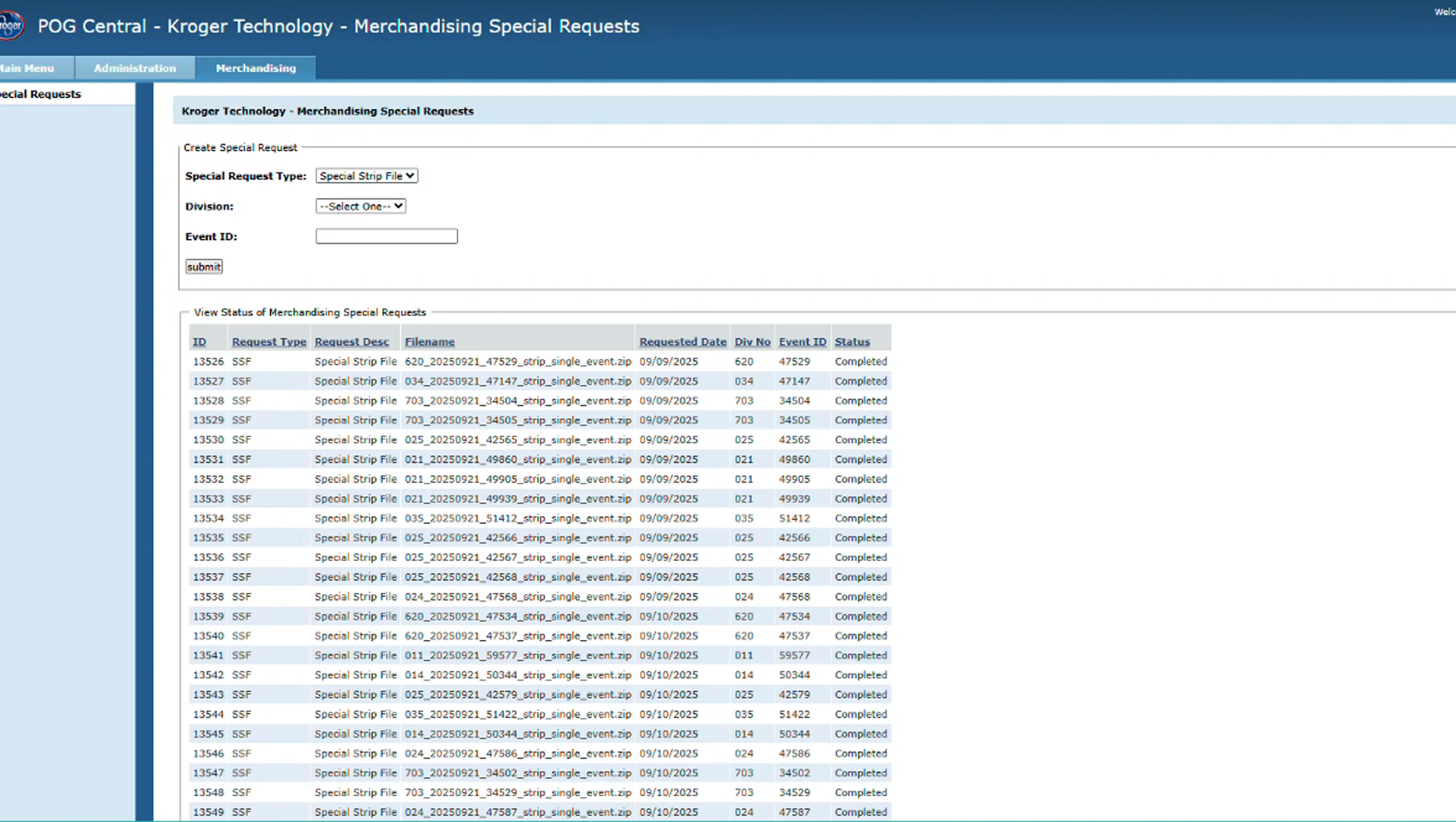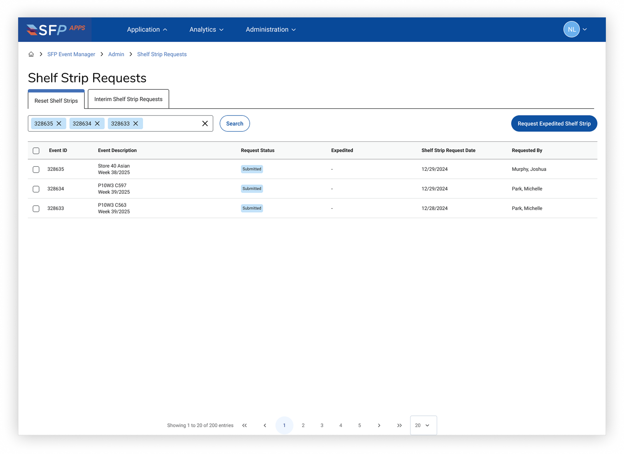 Expedite Shelf Strip Request Search