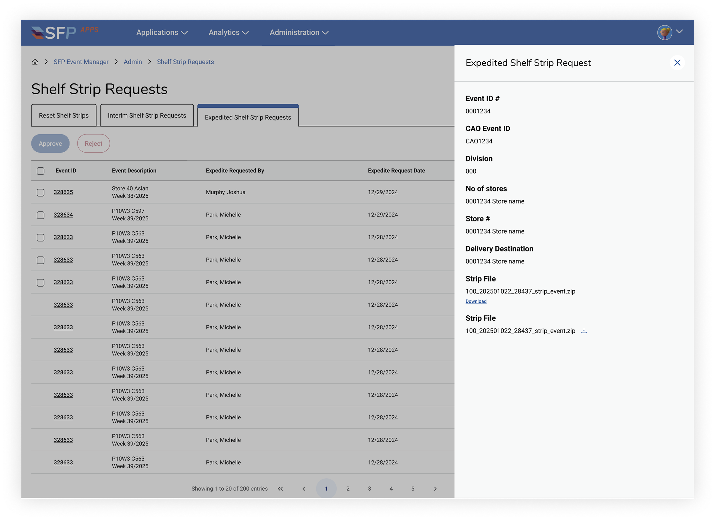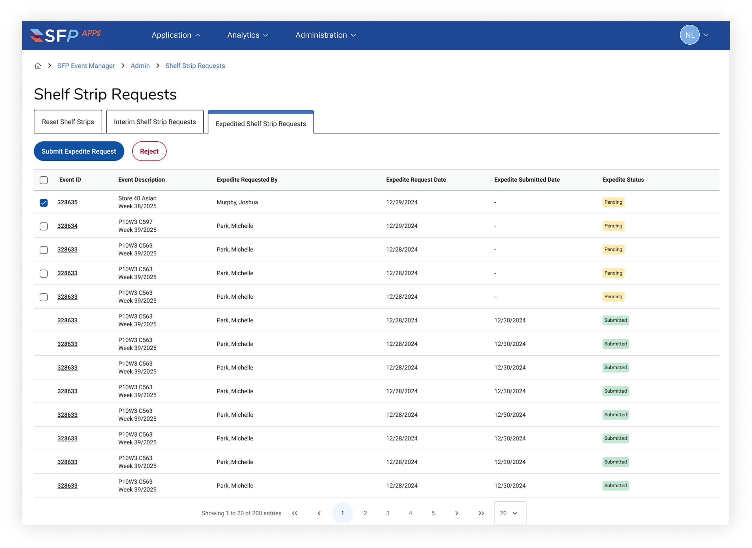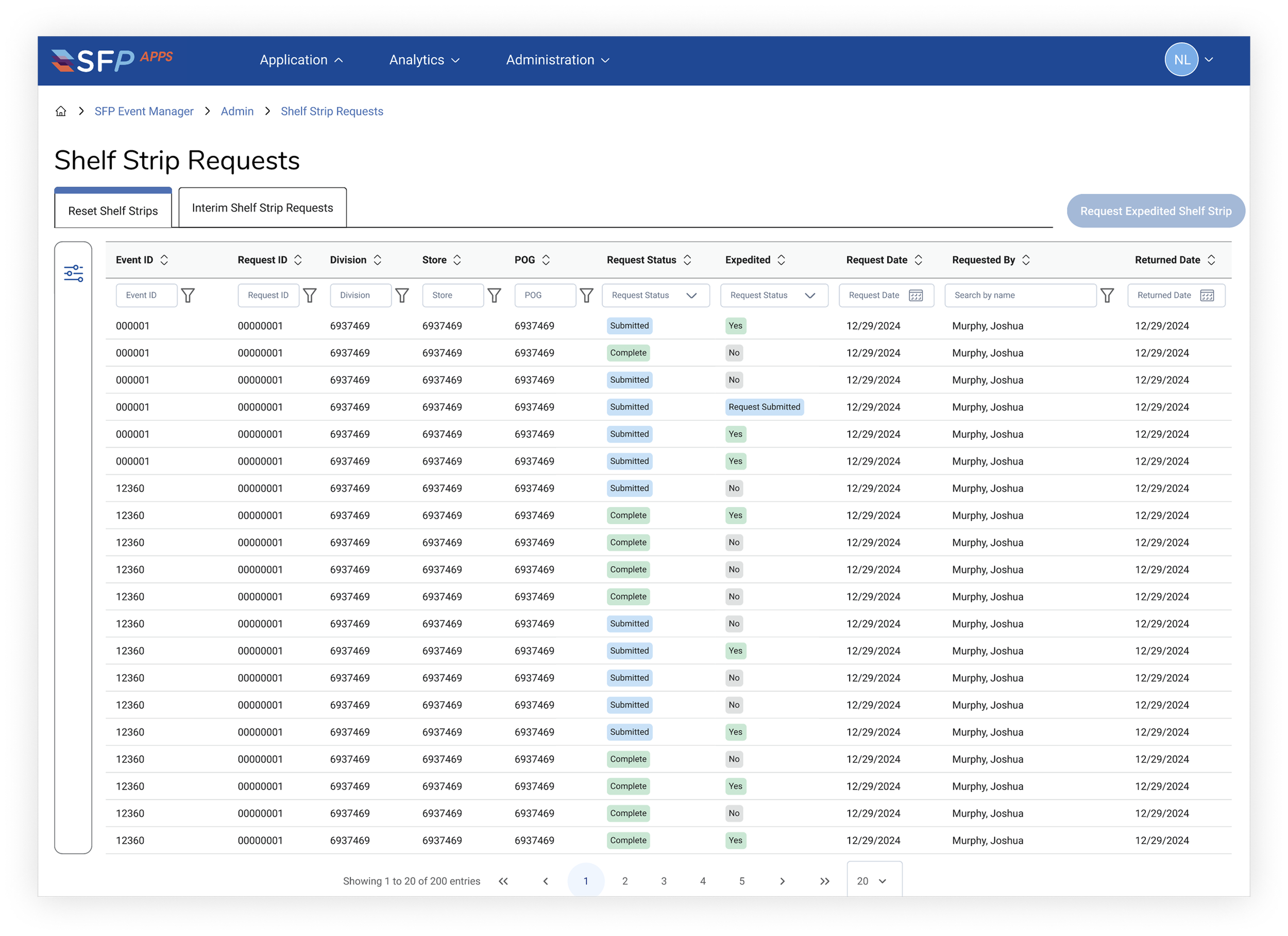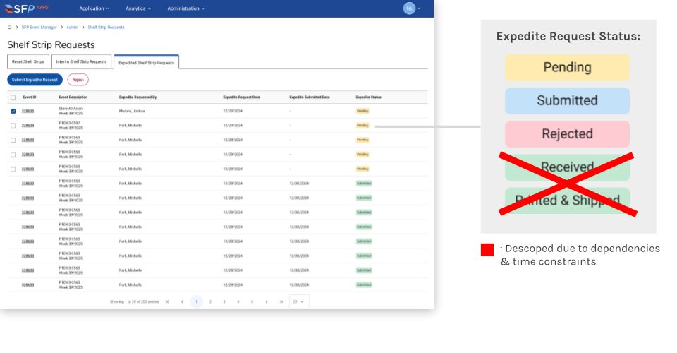 Expedite Shelf Strip Request Admin View
